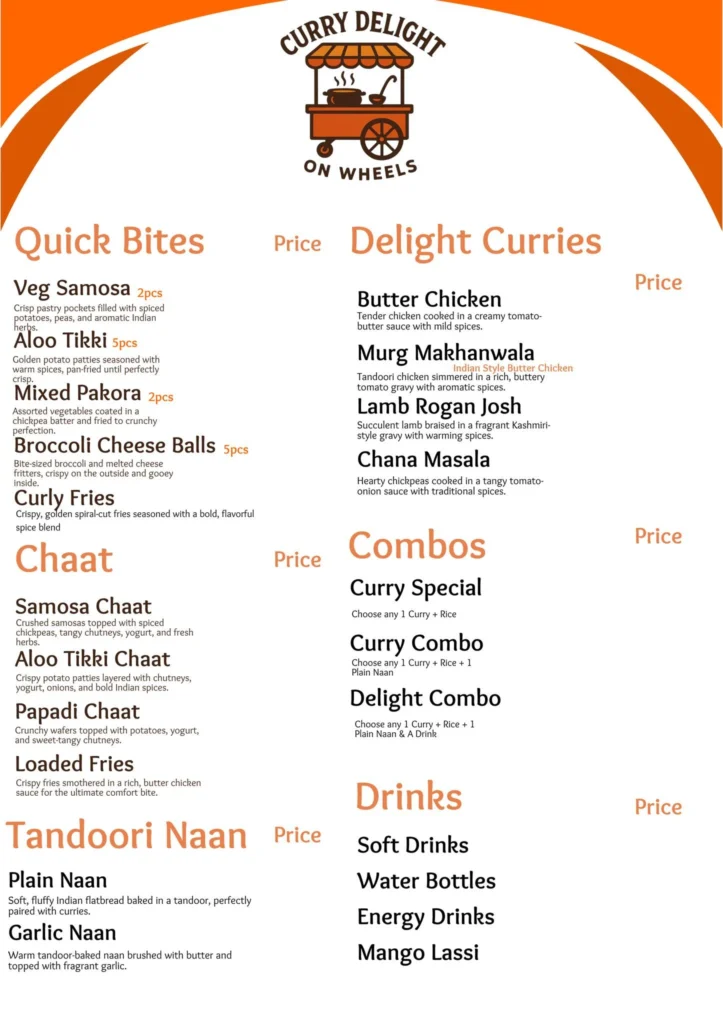 From quick lunches to evening cravings and special events, Curry Delight On Wheels is always ready to serve delicious food with speed, warmth, and consistency — because real flavour should always be on the move.