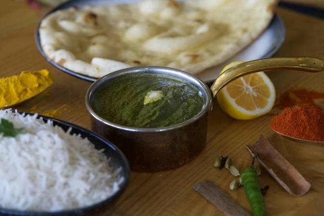 Saag is a leaf based dish eaten in the Indian sub-continent with tandoori naan bread or rice. Key ingredients spinach, cream, and Indian herbs.