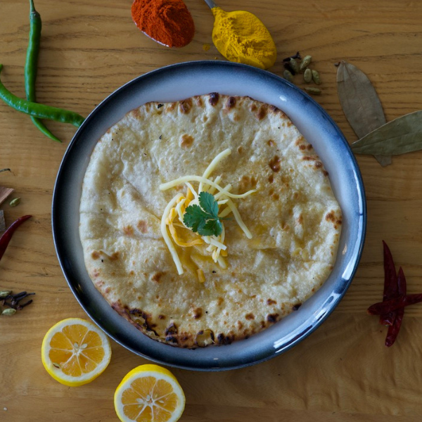 Traditional Indian bread stuffed with cheese and baked in tandoor oven.